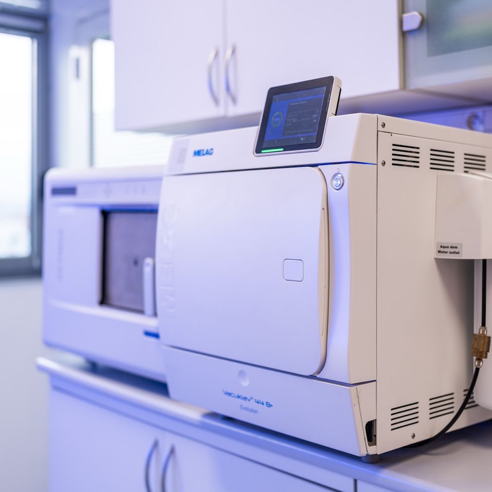Afin de garantir votre sécurité, notre chaîne de stérilisation respecte les plus hauts standards en matière d’asepsie. De plus, les instruments sont stockés dans des cassettes, sous sachet hermétique, garantissant leur stérilité jusqu’à votre arrivée.